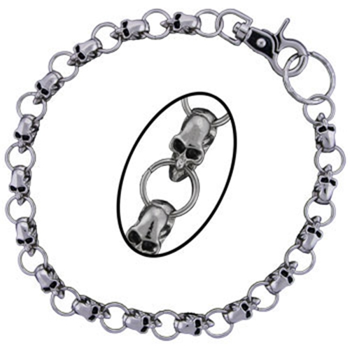 18" Chrome Heavy duty wallet chain with large skulls and lobster claw closure