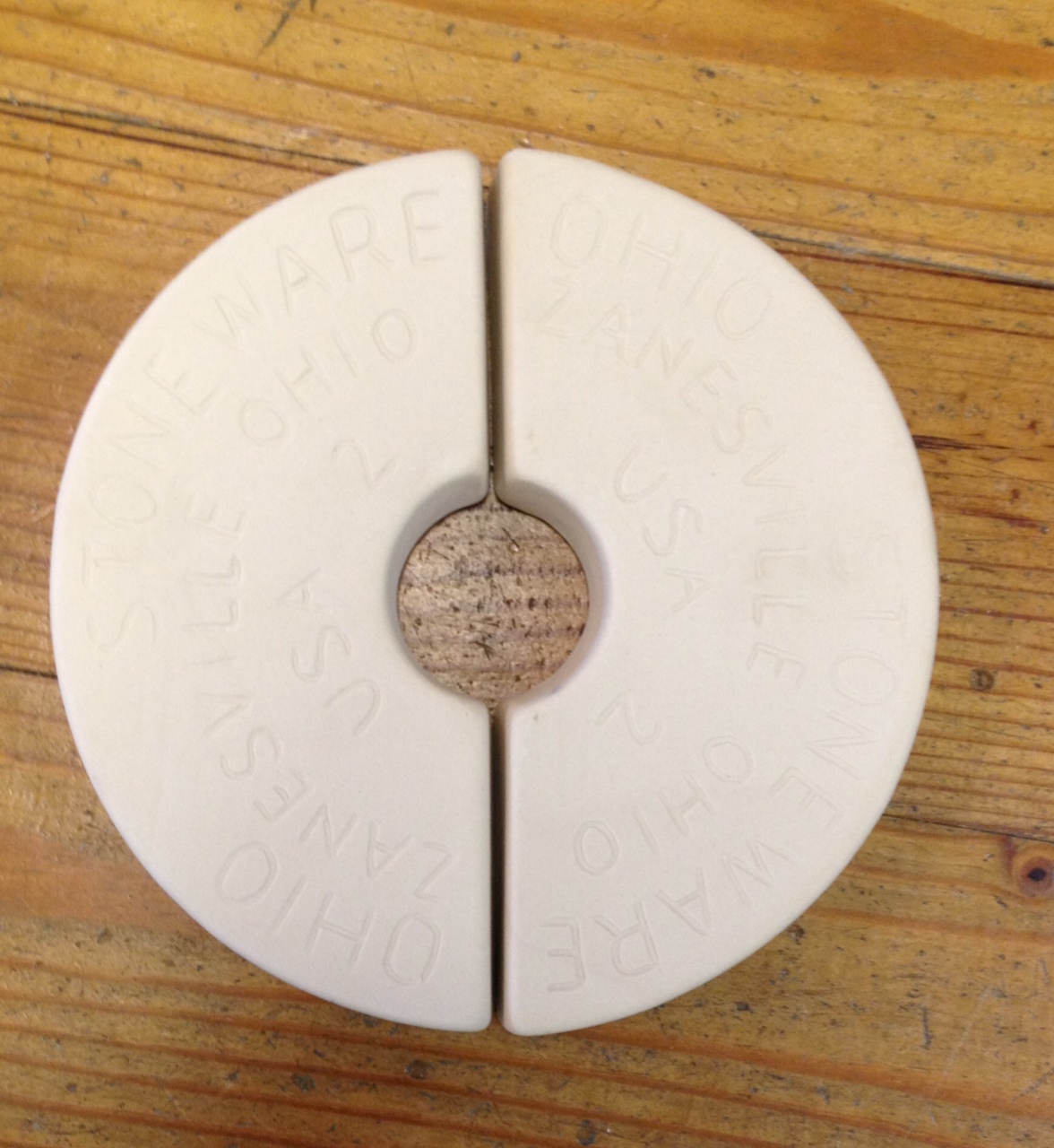 Two semi-circular stones are designed to fit inside a 2 gallon crock. The weights rest on top of food inside the crock and create pressure needed for proper fermentation.