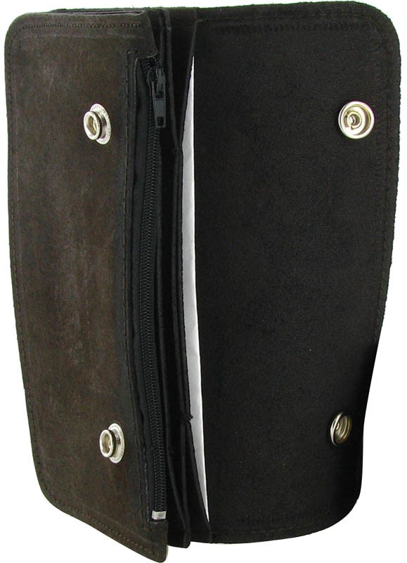 Black Trucker wallet, made of genuine leather with a suede feel.