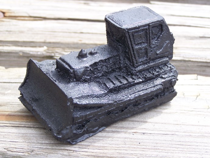This unique figurine is a true work of art, handcrafted with care in Kentucky using coal as its raw material. The bulldozer shape is beautifully carved and showcases the skill of the artisan who created it. You'll love the way it adds a touch of rugged charm to your home décor, whether you place it on a shelf, desk, or mantel. The Bulldozer Made from Coal Figurine is a one-of-a-kind piece that will be a conversation starter in any room. It was crafted with great attention to detail and is a testament to the creativity and resourcefulness of the artist. Bring a piece of Kentucky into your home with this stunning handcrafted figurine. 4" x 2"