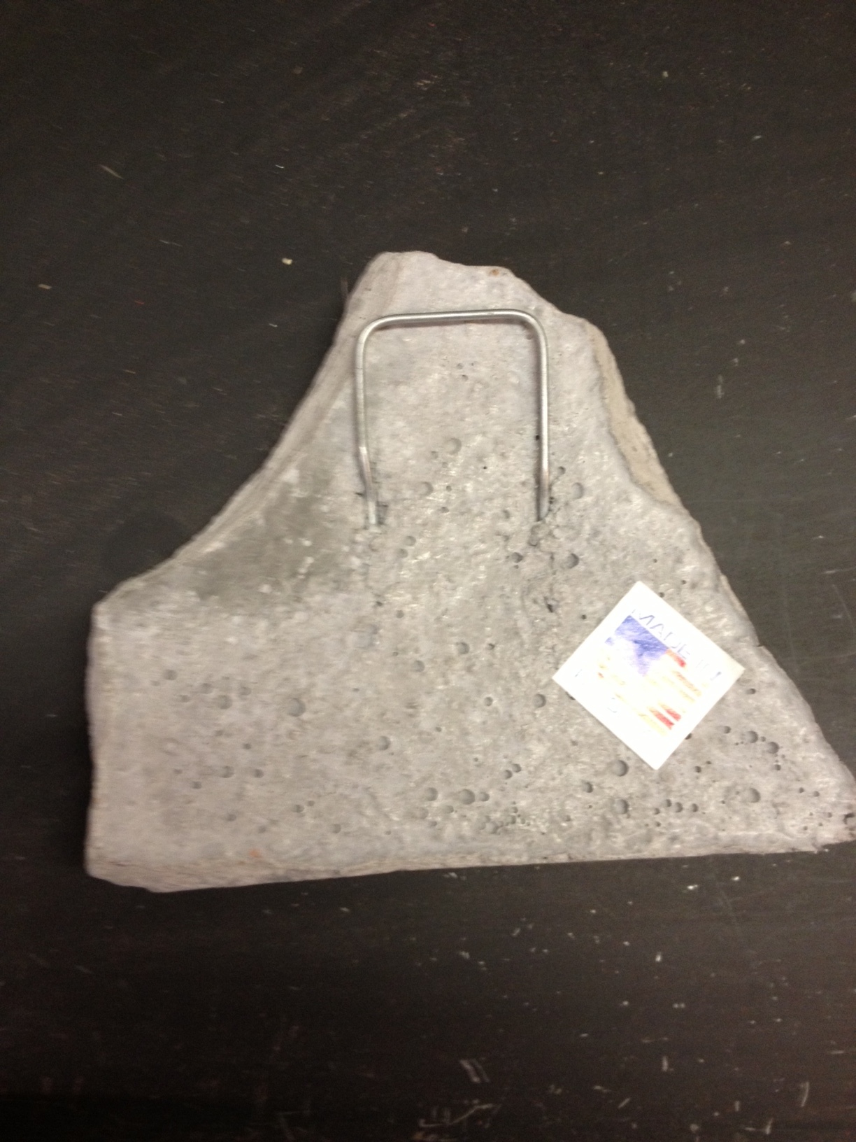 A cast stone Made in the USA Pet Memorial Stone. Your choice of tag color(Purple, Pink, Blue, Red or Gold) with up to five lines engraved with up to 22 characters each line including spaces. The stone also has a hook on the back for hanging. 6" x 5" x 1" Weighs 1 1/4 lb