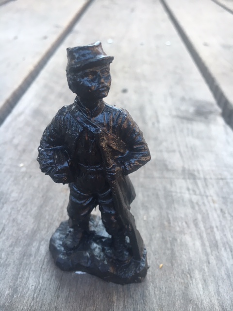 This unique figurine is a one-of-a-kind piece handcrafted by skilled artisans from Kentucky using coal as their medium. It features a Confederate soldier in full uniform, perfect for display in your home or as a gift for any history buff or collector. The attention to detail is impeccable, showcasing the artistic talent and craftsmanship of the creators. Add this handcrafted piece to your table décor or home décor collection to bring a touch of history and art to your space. 4" x 2"