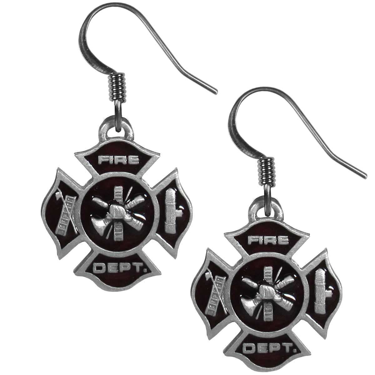 Dangle earrings are cast in zinc, lead free and hypoallergenic with intricate fire dept logo details.