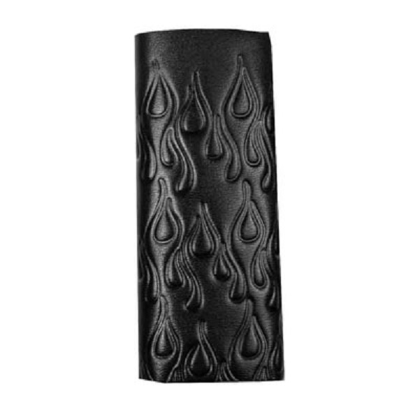 Embossed Flames on genuine black leather 4" Hair Glove®