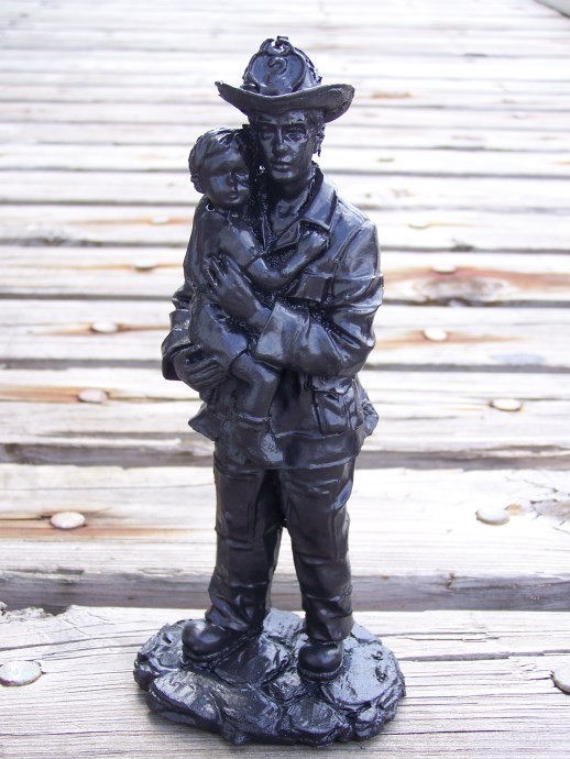 This handcrafted figurine from Kentucky is a unique addition to any collection. Depicting a fireman in action, it captures the bravery and heroism of those who risk their lives to save others. The attention to detail and quality craftsmanship make this piece a standout item in the world of decorative collectibles. Perfect for both fans of firefighting and those who appreciate the art of sculpture, this figurine is sure to impress. 8.5" x3.5"