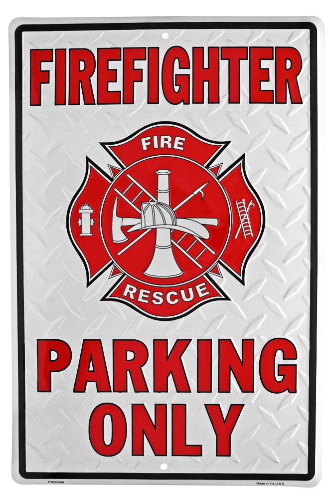 > Firefighter Parking Only Tin Sign 18" X 12"
