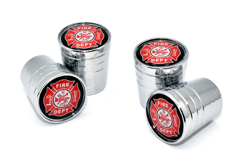 Firefighter 4-piece shiny chrome universal valve stem caps by Elektroplate. Comprised of UV-protected and scratch resistant domed graphics made in the USA. Valve caps are made of corrosion resistant, durable and lightweight aluminum. Each cap includes a high quality leakproof sealing ring to prevent pressure loss. Replace your old caps with our colorful valve stem caps. Universal fit for your car, bike, truck, trailer, bus, motorcycle, van, RV and more.