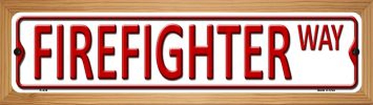 > Firefighter Way Wood Mounted Metal Mini Street Sign