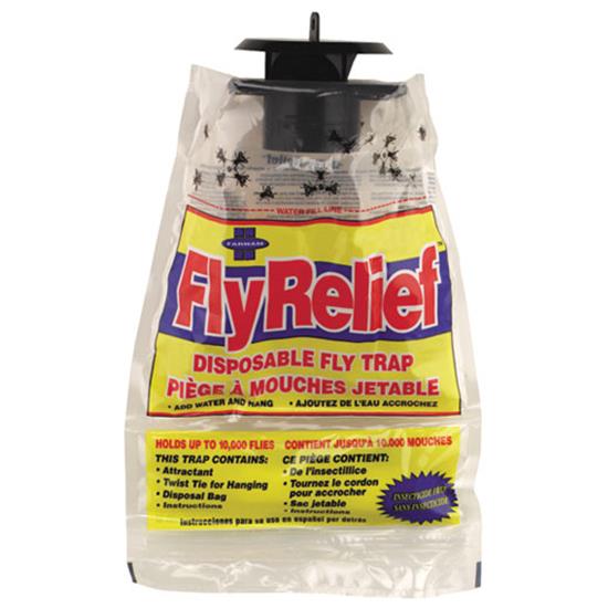 Filled with water, the Fly Relief Trap is a disposable bag that is free of insecticides, so it's safe to use around pets in the yard or kennel. Flies are drawn to the attractant, and then drown when they investigate. With a convenient twist-tie for hanging, the bag holds 10,000 flies. Outdoor use only.