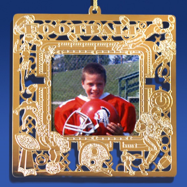 Gold Plated Brass Football Player Christmas Photo Frame Tree Ornament Great for year round display!