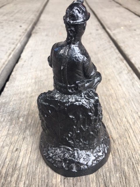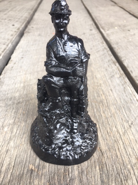 This beautiful handmade figurine depicts a modern coal miner, skillfully crafted from coal sourced from the state of Kentucky. The attention to detail is evident in the intricate design and the quality of the workmanship. Perfect for collectors of handcrafted pieces or those looking for a unique addition to their home decor, this coal miner figurine is a true work of art. The artist's dedication to using high-quality materials and their expertise in creating stunning pieces is clearly evident. Add this beautiful piece to your collection today!