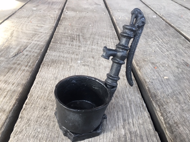 This unique pitcher pump is a true piece of American craftsmanship, made in Kentucky with locally sourced coal. Its design is inspired by the vintage water pumps of the past and it adds a charming touch to any table or home decor. The pump has been carefully finished by hand and is ready to use or display. It's perfect for those who appreciate quality, one-of-a-kind pieces in their home. 6 1/2" X 3 1/2"