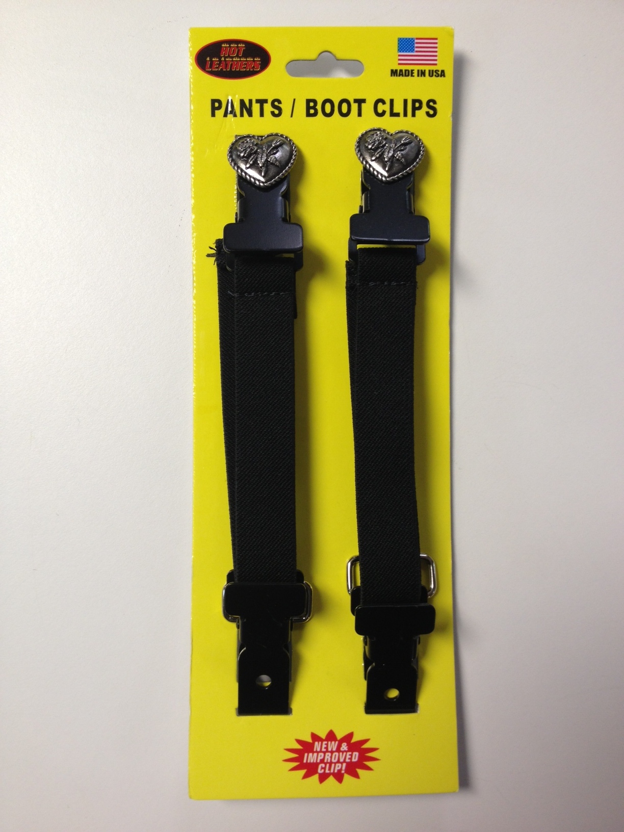 Heart with Rose Biker Pant Bungees / Clips - 8" adjustable Pant Bungees with buffalo nickel medallions keep your pant legs pulled down while riding to keep the air from rushing up your legs. Made of black stretchable bungee material and silver heavy duty clips.