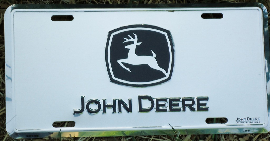 John Deere Anodized Silver Black License Plate