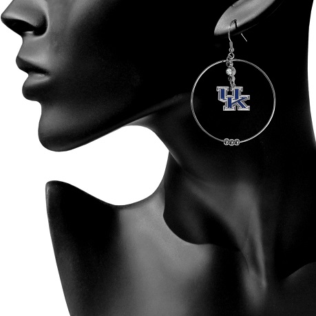 These trend-setting Kentucky Wildcats 2 inch Hoop earrings are casual and lightweight large hoops with eye catching team charm and crystal accent. These trendy earrings feature a 2 inch hoop with a floating rhinestone and team charm with carved and enameled details. Sporty meets chic with these sassy earrings that would make the perfect gift for any female fan. The perfect game-day accessory and also fun for any day.