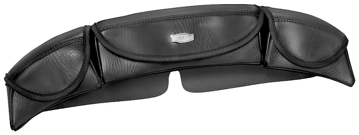 Looking to add convenient extra storage space to the inside of your fairing? Our new 3-Pouch Fairing Bag features three easily accessible individual storage pockets & offers more space than the average fairing bag. Pockets are large enough to accommodate items such as iPods, cell phones or any other gadgets you may want at our fingertips. Constructed from PVC leather, it's as stylish as it is durable! Pockets are easily accessible with magnetic closures. Middle pocket measures 9.25"W x 2.75"H x 3"D. Quick & easy installation.Fits: