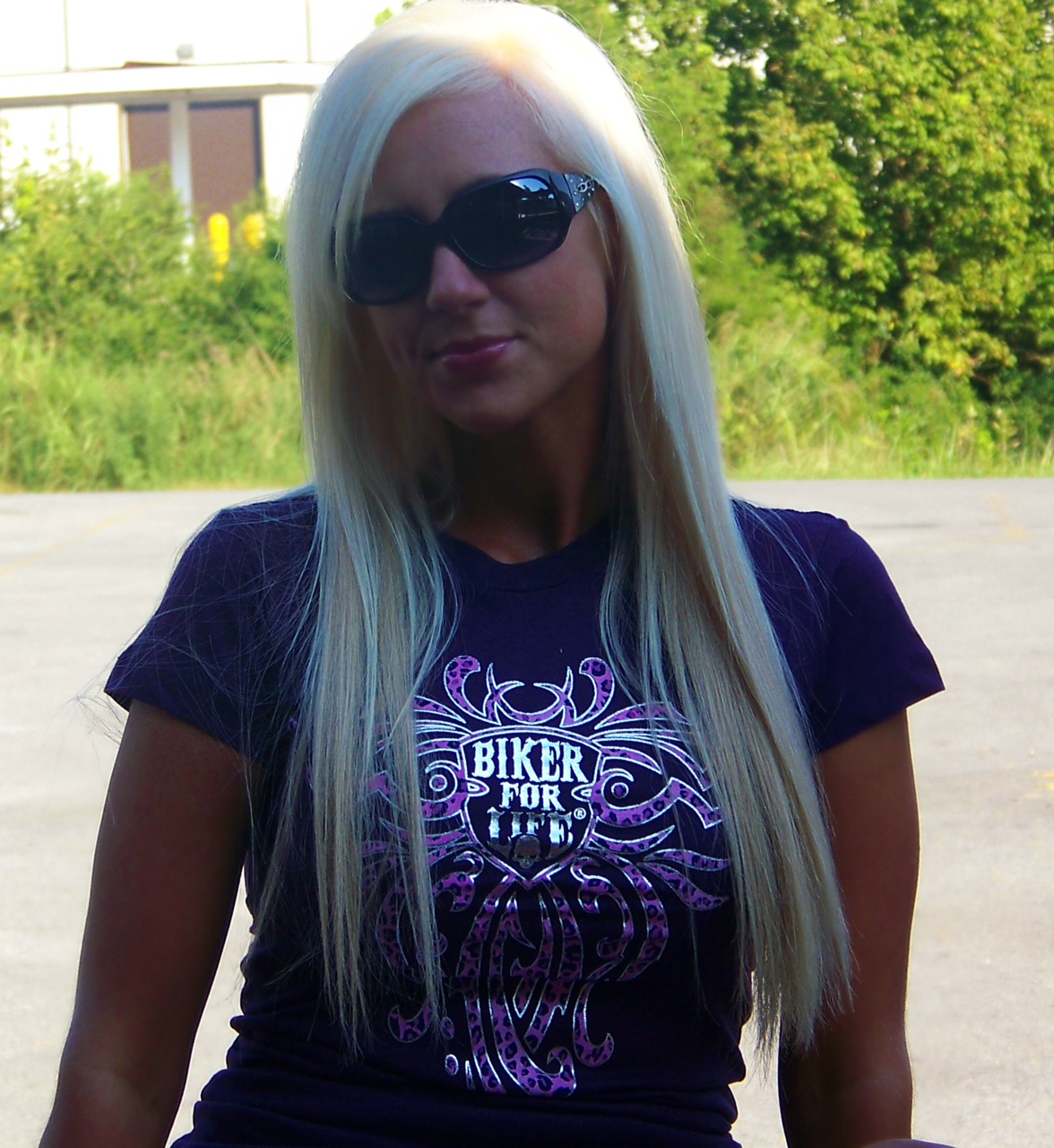 Ladies "Biker For Life" Silver Foil Classic Cut Tee Plum 100% Cotton