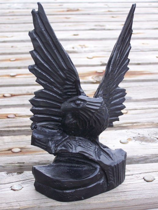This handcrafted figurine depicts a majestic eagle perched on a tree branch, created by talented artisans from Kentucky using coal as their medium. The intricate details and rustic/ primitive style of this black coal figurine make it a unique addition to your home decor collection. Made in the United States, this figurine showcases the skill and dedication of American craftsmen. The eagle figurine is perfect for collectors and nature lovers who appreciate the beauty of handcrafted art. Its symbolic meaning of freedom and strength makes it a perfect gift for special occasions. Add this coal figurine to your home or office decor and enjoy a piece of authentic American craftsmanship that will last for generations. 10" x 6"