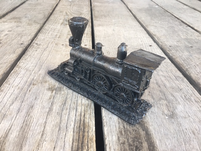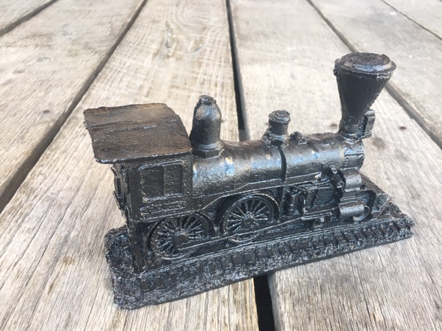 This handcrafted large steam train engine with smokestack is a unique piece made from coal in Kentucky. It is a perfect addition to any collection or display. The attention to detail on this item is impressive, making it a great conversation starter. The engine is a perfect representation of the steam age and is sure to impress anyone who sees it.9 1/4" X 5 1/2" X 2 3/4"