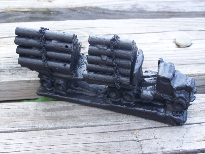 This handcrafted semi tractor trailer log truck is a unique piece of art made by skilled artisans from Kentucky. The black figurine is made from coal, which gives it a rustic and primitive look that is sure to fit any home decor style. The truck is a perfect addition to any collection of sculptures and figurines, and its theme of coal and its connection to the United States makes it a great conversation starter. This item is not only a beautiful piece of art but also a symbol of the American history and traditions. 5" x 2"