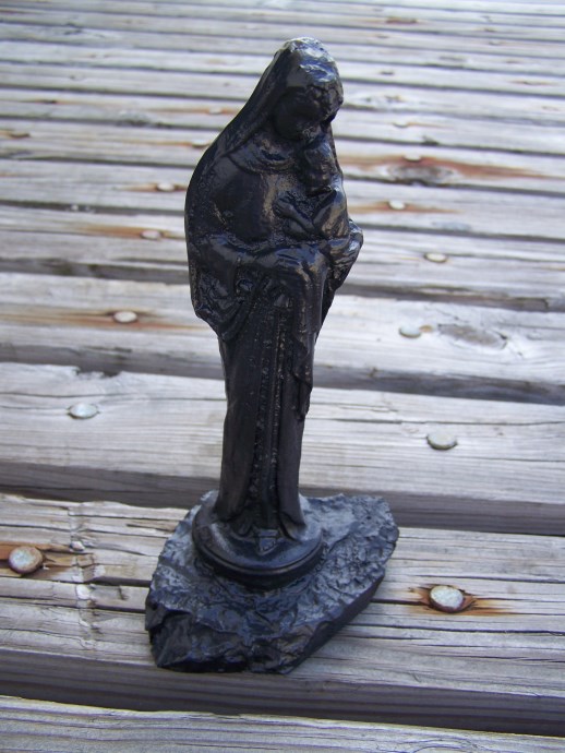 This exquisite Madonna figurine is a one-of-a-kind piece of art handcrafted by skilled artisans from the state of Kentucky. Made from the finest coal, this figurine is a unique representation of religious art that will grace any home decor. The country of origin of this masterpiece is United States, making it a true American treasure. This figurine is perfect for collectors of handcrafted pieces and those who love to adorn their homes with unique art pieces.5" x 9 1/2"