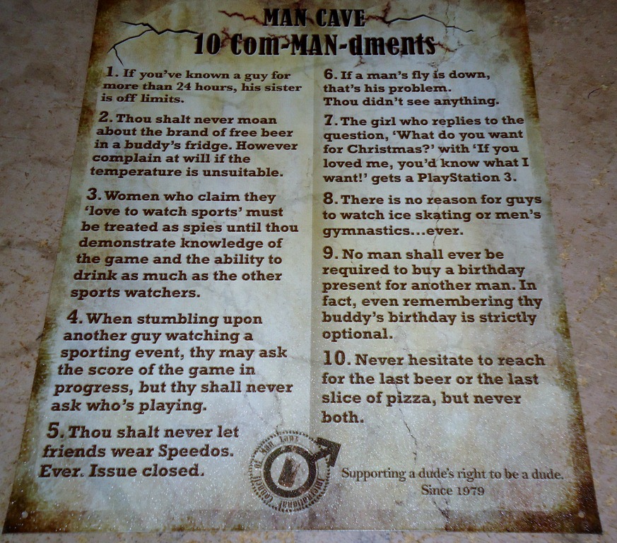 Man Cave 10 Com~MAN~ments Tin Sign 12" X 15"