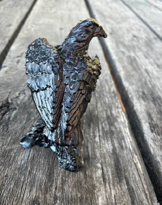 This beautiful eagle figurine is a true work of art, handcrafted with care by skilled artisans from Kentucky. Made in the United States, this piece of table decor is a stunning addition to any home. The attention to detail is impeccable, with every feather and feature meticulously crafted to create a lifelike representation of this majestic bird. Display it in your home or office to add a touch of elegance and sophistication to your space. Perfect for collectors or anyone who appreciates the beauty of handcrafted pieces. 4" x 2 1/4"