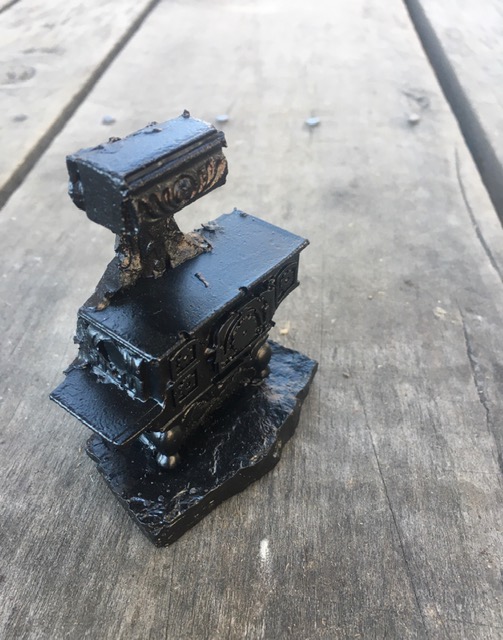 This handcrafted cook stove is a piece of nostalgia, carefully crafted by artisans in Kentucky. The stove is made from coal and is a unique addition to any home. It's perfect for those who love handmade pieces with a touch of history. The stove can be used as a decorative item or as a functional piece in your kitchen or dining area. The craftsmanship is evident in the intricate details and design of the stove. It's a true work of art that is sure to impress anyone who sees it. 3" x 2" x 1 1/2" .