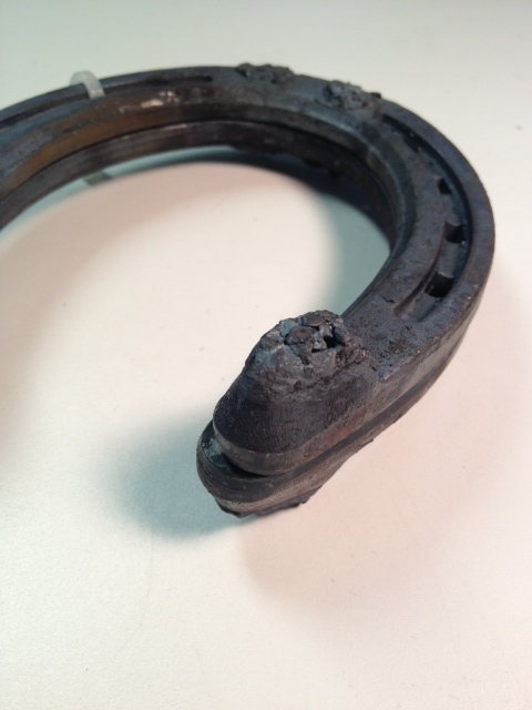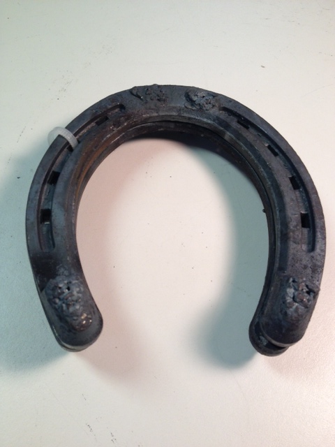 One pair of New Heeled Horseshoes with Borium applied in three locations on the shoe. Borium provides better traction for rocky and paved surfaces giving your horse surer footing.