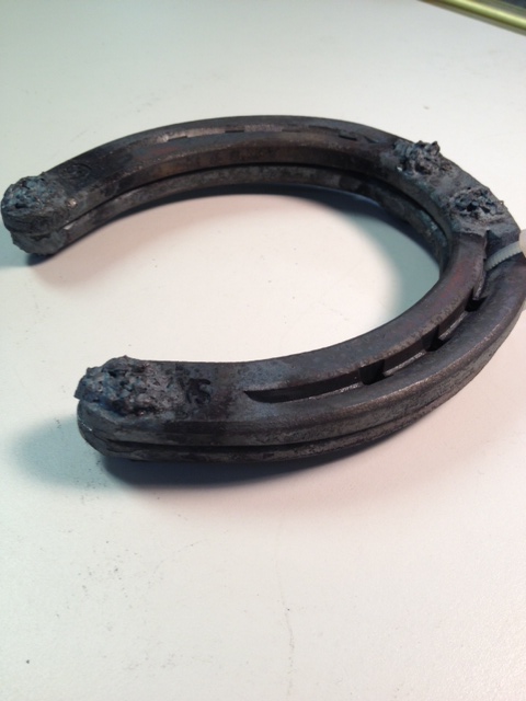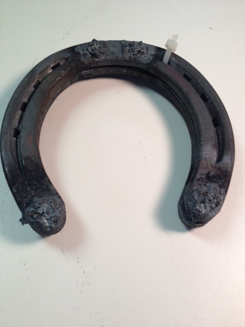 One pair of New Heeled Horseshoes with Borium applied in three locations on the shoe. Borium provides better traction for rocky and paved surfaces giving your horse surer footing.