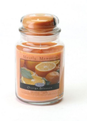 Orange Blossom 2 in 1 Jar Candle 18oz Fragrant orange blossom interwoven with sparkling mandarin, exotic ylang-ylang and white jasmine. Our signature Lid Lites soy jar candles feature 2 candles in 1 - with four more ounces than the leading jar candle! You can burn the candle found in the lid in one room and the jar in another room! Or burn the jar and lid candles together in our customized candle holder! We fragrance throughout the entire candle with amazing pure perfume for long lasting fragrance. We use a pure cotton wick and special ingredients to help prevent your rich candle color from fading. You will fall in love with our candles - give us a try! 18 oz. Approx burn time 80-100 hours