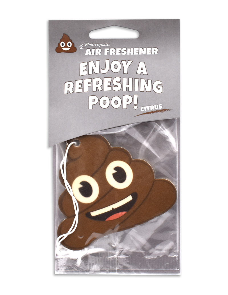 Elektroplate presents a fun new line of high quality decorative air fresheners. Enjoy a refreshing scent while displaying your favorite emoji. Our full color Poop Emoji will be your favorite new Air Freshener. Made in the USA. All Elektroplate air fresheners are extremely visible indoors and outdoors, which makes them perfect for your car, truck, locker, room, boat, SUV, or RV. In addition, all Elektroplate air fresheners are packaged in fun retail packing to make a great gift.
