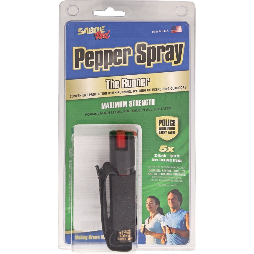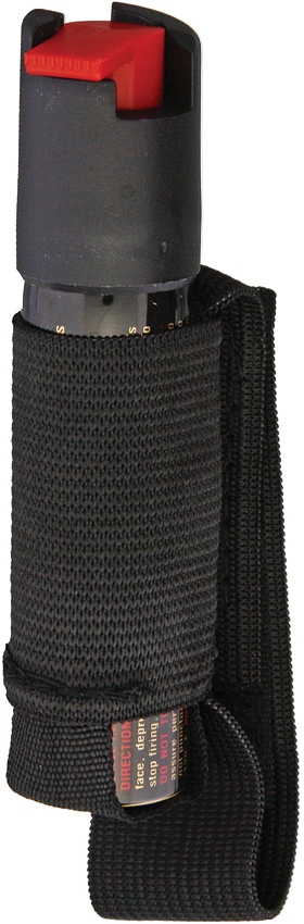 10% Oleoresin Capsicum. 0.75 oz. aerosol canister. Contains approximately 25 bursts. Black casing. Attached to unit is Velcro strap which fits around the back of the hand for easy carry and accessibility. Can be carried in hand while walking, running or exercising outdoors