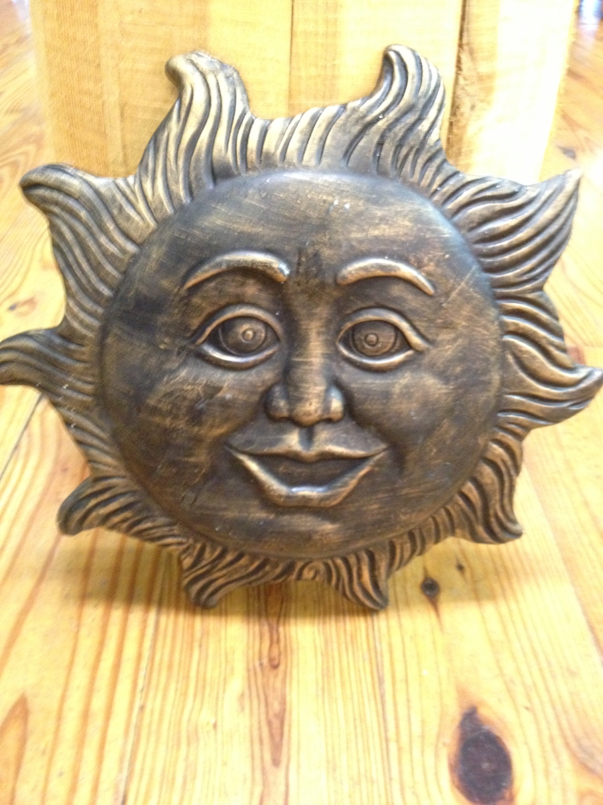 Sun Stepping Stone/Wall Plaque 12" Has wall hanging slot on back Weighs 5 lbs