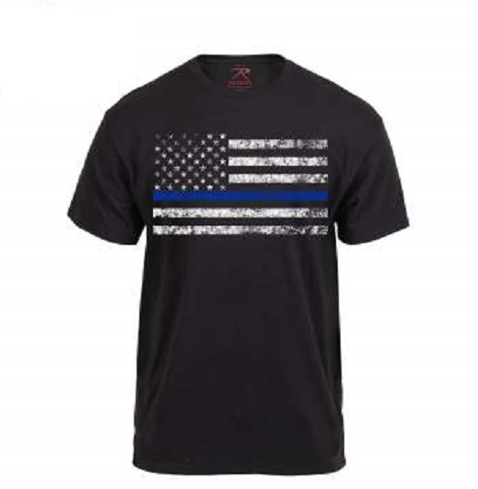 Soft Cotton/Polyester Blend (Items 3960 And 3961 Are 100% Cotton) Tagless Label For Ideal Comfort Distressed US Flag With Thin Blue Line Printed On Chest The Thin Blue Line Shows Respect And Support For Police And Law Enforcement Officials Proceeds From This Purchase Benefit Families Of Fallen First Responders
