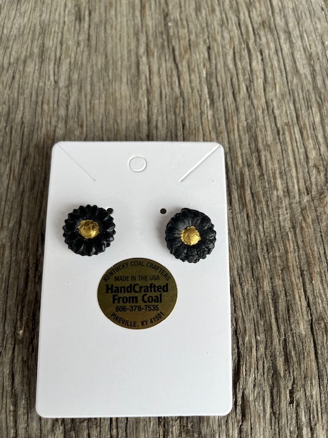 These stunning gold sunflower stud earrings have been expertly crafted by talented artisans at Kentucky Coal Crafters. The intricate detailing of the sunflowers adds a unique touch to these handmade earrings, making them a perfect addition to any jewelry collection. The earrings are made from high-quality coal and have a beautiful gold finish that adds to their elegance. The stud style makes them easy to wear and perfect for any occasion.