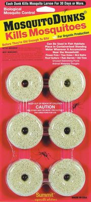 Kills Mosquitoes before They’re Old Enough to Bite!® The Mosquito Dunks® are America’s best selling home owner mosquito control product. The only product with BTI, a bacteria toxic only to mosquito larvae, that lasts 30 days and treats 100 square feet of surface water.