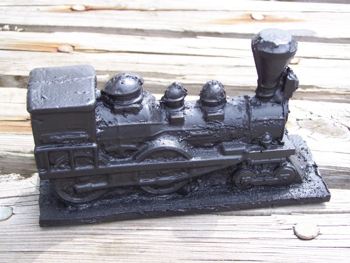This handcrafted steam train engine with a smokestack made from coal in Kentucky is a unique addition to any collection. The expert craftsmanship and attention to detail are evident in every aspect of this piece. The train was manufactured in the United States, adding to its authenticity and value. Own a piece of history with this handcrafted and finished steam train engine. The intricate design and use of coal as a material make this piece stand out among other handcrafted items. Perfect for collectors of handcrafted pieces or those who appreciate the beauty of vintage transportation. Add this unique item to your collection today. 7 1/2" x 4 1/2"